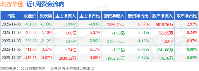 资金流向数据方面,本周北方华创主力资金合计净流入1.21亿元,游资资金合计净流出3.75亿元,散户资金合计净流入2.54亿元。本周资金流向一览见下表: