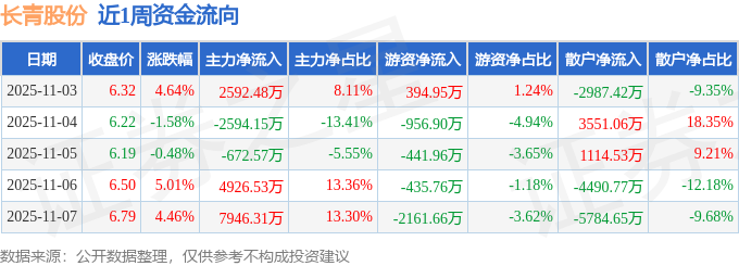 资金流向数据方面,本周长青股份主力资金合计净流入1.22亿元,游资资金合计净流出3601.34万元,散户资金合计净流出8597.25万元。本周资金流向一览见下表: