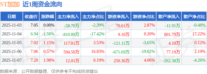 资金流向数据方面,本周ST加加主力资金合计净流出146.07万元,游资资金合计净流出462.72万元,散户资金合计净流入608.79万元。本周资金流向一览见下表: