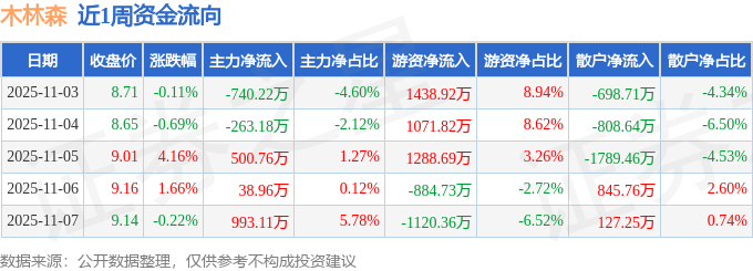 资金流向数据方面,本周木林森主力资金合计净流入529.44万元,游资资金合计净流入1794.35万元,散户资金合计净流出2323.79万元。本周资金流向一览见下表: