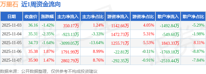 资金流向数据方面,本周万里石主力资金合计净流入922.77万元,游资资金合计净流入3555.95万元,散户资金合计净流出4478.73万元。本周资金流向一览见下表: