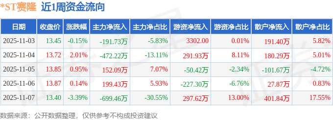 资金流向数据方面,本周*ST赛隆主力资金合计净流出1011.89万元,游资资金合计净流入312.16万元,散户资金合计净流入699.72万元。本周资金流向一览见下表: