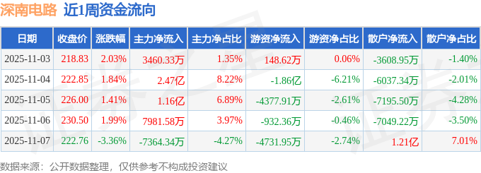 资金流向数据方面,本周深南电路主力资金合计净流入4.03亿元,游资资金合计净流出2.85亿元,散户资金合计净流出1.18亿元。本周资金流向一览见下表: