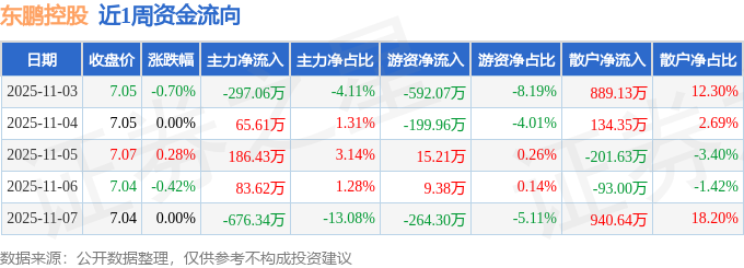资金流向数据方面,本周东鹏控股主力资金合计净流出637.75万元,游资资金合计净流出1031.74万元,散户资金合计净流入1669.49万元。本周资金流向一览见下表: