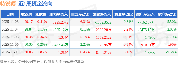 资金流向数据方面,本周特锐德主力资金合计净流入3.05亿元,游资资金合计净流入9904.3万元,散户资金合计净流出4.04亿元。本周资金流向一览见下表: