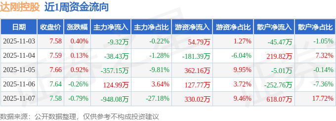 资金流向数据方面,本周达刚控股主力资金合计净流出1228.0万元,游资资金合计净流入693.35万元,散户资金合计净流入534.65万元。本周资金流向一览见下表: