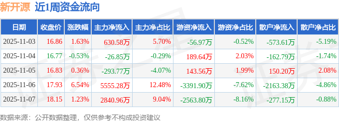 资金流向数据方面,本周新开源主力资金合计净流入8706.19万元,游资资金合计净流出5679.47万元,散户资金合计净流出3026.73万元。本周资金流向一览见下表: