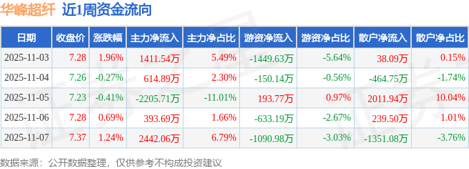资金流向数据方面,本周华峰超纤主力资金合计净流入2656.48万元,游资资金合计净流出3130.17万元,散户资金合计净流入473.69万元。本周资金流向一览见下表: