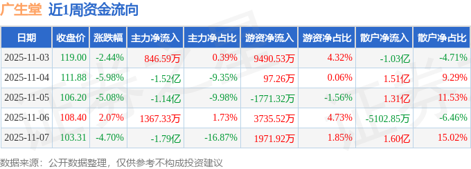资金流向数据方面,本周广生堂主力资金合计净流出4.23亿元,游资资金合计净流入1.35亿元,散户资金合计净流入2.88亿元。本周资金流向一览见下表:
