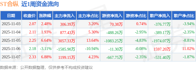 资金流向数据方面,本周ST合纵主力资金合计净流入3854.4万元,游资资金合计净流出2180.19万元,散户资金合计净流出1674.21万元。本周资金流向一览见下表: