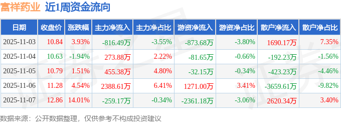 资金流向数据方面,本周富祥药业主力资金合计净流入2042.22万元,游资资金合计净流出2077.65万元,散户资金合计净流入35.43万元。本周资金流向一览见下表:
