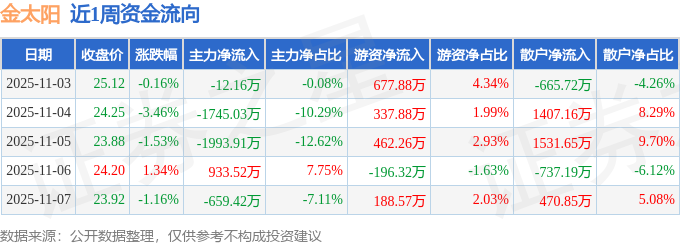 资金流向数据方面,本周金太阳主力资金合计净流出3477.0万元,游资资金合计净流入1470.26万元,散户资金合计净流入2006.74万元。本周资金流向一览见下表: