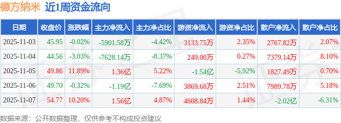 资金流向数据方面,本周德方纳米主力资金合计净流入3795.79万元,游资资金合计净流出3529.52万元,散户资金合计净流出266.27万元。本周资金流向一览见下表: