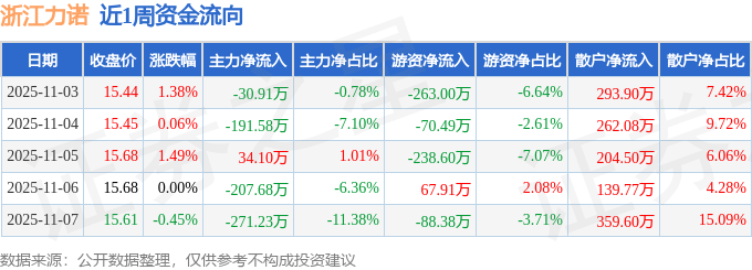 资金流向数据方面,本周浙江力诺主力资金合计净流出667.29万元,游资资金合计净流出592.56万元,散户资金合计净流入1259.85万元。本周资金流向一览见下表: