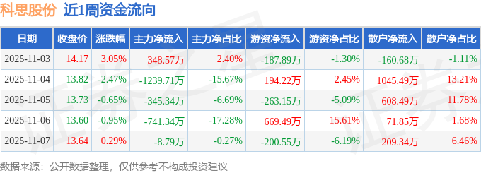 资金流向数据方面,本周科思股份主力资金合计净流出1986.6万元,游资资金合计净流入212.12万元,散户资金合计净流入1774.48万元。本周资金流向一览见下表: