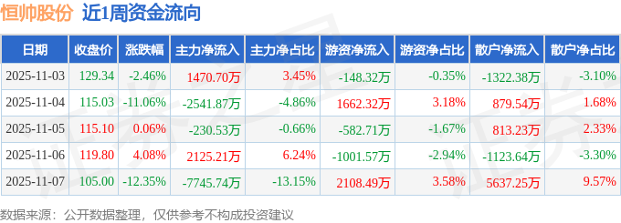 资金流向数据方面,本周恒帅股份主力资金合计净流出6922.22万元,游资资金合计净流入2038.21万元,散户资金合计净流入4884.01万元。本周资金流向一览见下表: