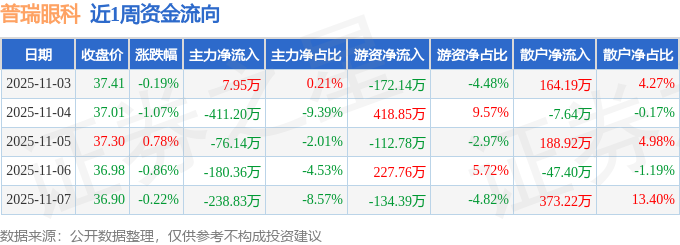 资金流向数据方面,本周普瑞眼科主力资金合计净流出898.59万元,游资资金合计净流入227.3万元,散户资金合计净流入671.29万元。本周资金流向一览见下表: