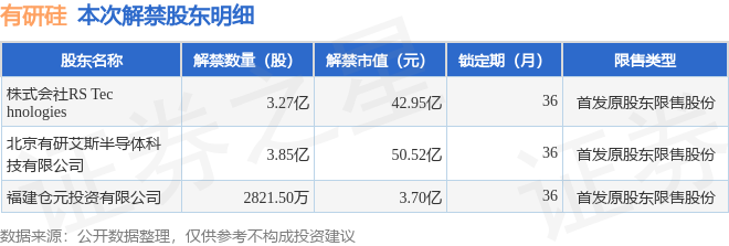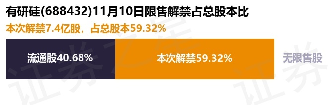 证券之星消息,根据市场公开信息整理,有研硅(688432)于11月10日将有7.4亿股限售股份解禁,为公司首发原股东限售股份,占公司总股本59.32%。(本次数据根据历史公告整理得出,实际情况以上市公司最新公告为准)最近一年内,该股累计解禁605.45万股,占总股本的0.49%。本次解禁后,公司已无限售股份。具体如下图所示:
