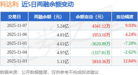 证券之星消息,11月7日,科达利(002850)融资买入1.09亿元,融资偿还6341.42万元,融资净买入4512.86万元,融资余额5.03亿元。