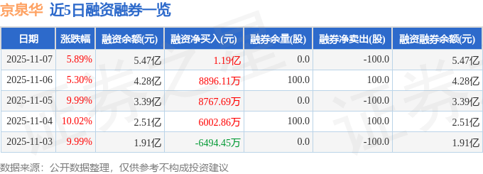 京泉华融资融券信息显示,融资方面,当日融资买入4.42亿元,融资偿还3.23亿元,融资净买入1.19亿元,连续3日净买入累计2.96亿元。融券方面,融券卖出0.0股,融券偿还100.0股,融券余量0.0股,融券余额0.0万元。融资融券余额5.47亿元。