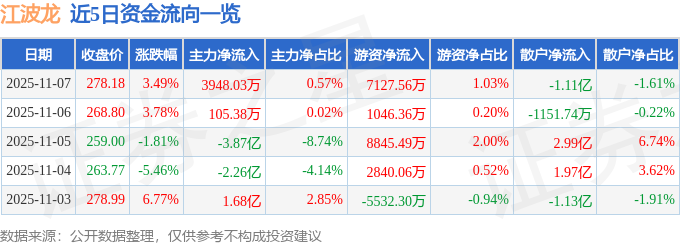 11月7日的资金流向数据方面,主力资金净流入3948.03万元,占总成交额0.57%,游资资金净流入7127.56万元,占总成交额1.03%,散户资金净流出1.11亿元,占总成交额1.61%。