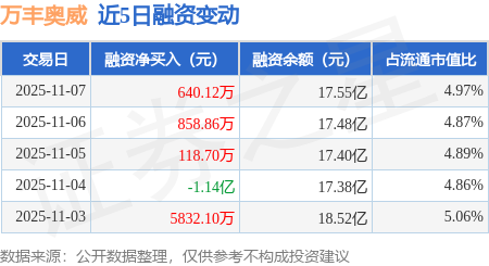 证券之星消息,11月7日,万丰奥威(002085)融资买入8302.41万元,融资偿还7662.29万元,融资净买入640.12万元,融资余额17.55亿元,近3个交易日已连续净买入累计1617.68万元。