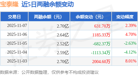 证券之星消息,11月7日,宝泰隆(601011)融资买入7465.13万元,融资偿还6830.73万元,融资净买入634.4万元,融资余额2.69亿元,近20个交易日中有12个交易日出现融资净买入。