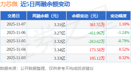 证券之星消息,11月7日,力芯微(688601)融资买入1719.94万元,融资偿还1358.39万元,融资净买入361.55万元,融资余额3.31亿元,近20个交易日中有12个交易日出现融资净买入。