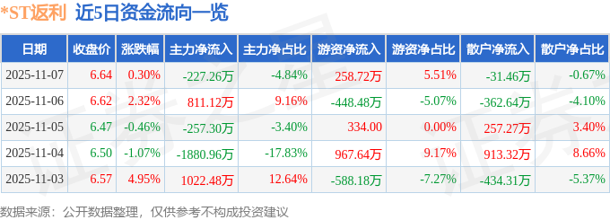 11月7日的资金流向数据方面,主力资金净流出227.26万元,占总成交额4.84%,游资资金净流入258.72万元,占总成交额5.51%,散户资金净流出31.46万元,占总成交额0.67%。