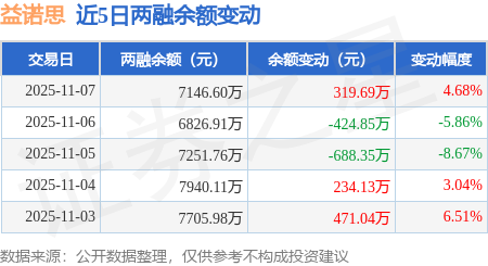 融资融券余额7146.6万元,较昨日上涨4.68%。