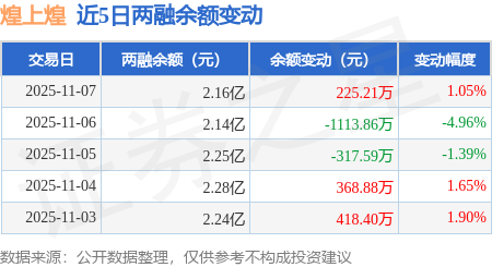 证券之星消息,11月7日,煌上煌(002695)融资买入690.5万元,融资偿还465.39万元,融资净买入225.12万元,融资余额2.16亿元,近20个交易日中有11个交易日出现融资净买入。