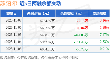 证券之星消息,11月7日,苏 泊 尔(002032)融资买入407.27万元,融资偿还229.99万元,融资净买入177.27万元,融资余额5738.61万元。