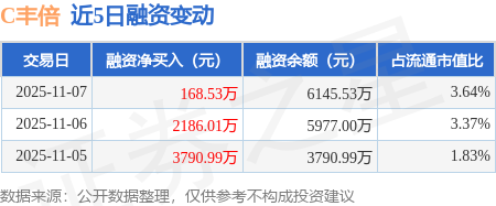 证券之星消息,11月7日,C丰倍(603334)融资买入4079.41万元,融资偿还3910.88万元,融资净买入168.53万元,融资余额6145.53万元,近3个交易日已连续净买入累计6145.53万元。