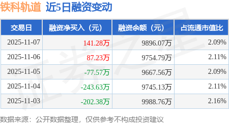 证券之星消息,11月7日,铁科轨道(688569)融资买入612.86万元,融资偿还471.58万元,融资净买入141.28万元,融资余额9896.07万元。