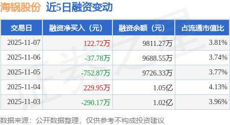 证券之星消息,11月7日,海锅股份(301063)融资买入581.94万元,融资偿还459.22万元,融资净买入122.72万元,融资余额9811.27万元。