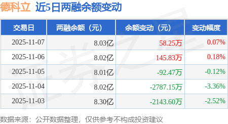 证券之星消息,11月7日,德科立(688205)融资买入8729.4万元,融资偿还8671.15万元,融资净买入58.25万元,融资余额8.03亿元。