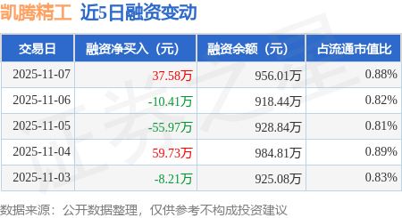 证券之星消息,11月7日,凯腾精工(920553)融资买入234.64万元,融资偿还197.07万元,融资净买入37.58万元,融资余额956.01万元。