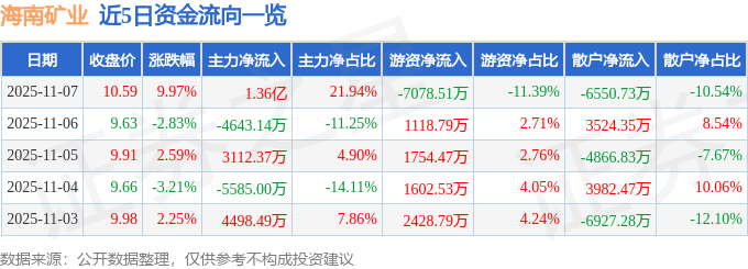 11月7日的资金流向数据方面,主力资金净流入1.36亿元,占总成交额21.94%,游资资金净流出7078.51万元,占总成交额11.39%,散户资金净流出6550.73万元,占总成交额10.54%。