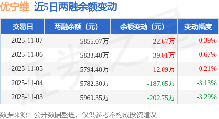 证券之星消息,11月7日,优宁维(301166)融资买入328.36万元,融资偿还305.69万元,融资净买入22.67万元,融资余额5856.07万元,近3个交易日已连续净买入累计73.77万元。