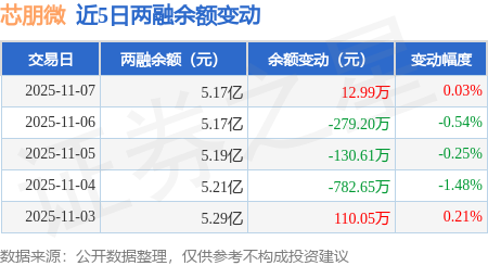 证券之星消息,11月7日,芯朋微(688508)融资买入1800.76万元,融资偿还1787.37万元,融资净买入13.39万元,融资余额5.17亿元。