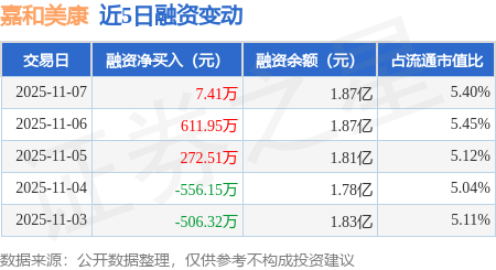 证券之星消息,11月7日,嘉和美康(688246)融资买入955.73万元,融资偿还948.32万元,融资净买入7.41万元,融资余额1.87亿元,近3个交易日已连续净买入累计891.86万元。