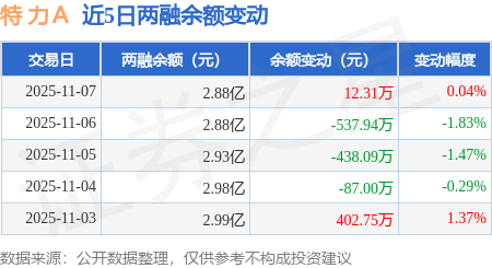 证券之星消息,11月7日,特 力A(000025)融资买入2744.0万元,融资偿还2737.51万元,融资净买入6.5万元,融资余额2.87亿元。