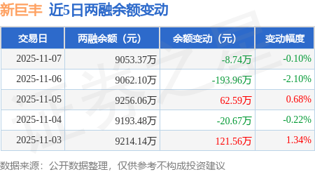 证券之星消息,11月7日,新巨丰(301296)融资买入255.79万元,融资偿还264.53万元,融资净卖出8.74万元,融资余额9053.37万元。