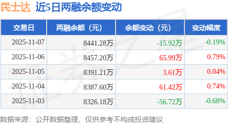 证券之星消息,11月7日,民士达(920394)融资买入335.28万元,融资偿还351.2万元,融资净卖出15.92万元,融资余额8441.28万元,近20个交易日中有12个交易日出现融资净买入。