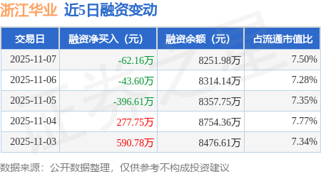 证券之星消息,11月7日,浙江华业(301616)融资买入576.94万元,融资偿还639.1万元,融资净卖出62.16万元,融资余额8251.98万元。