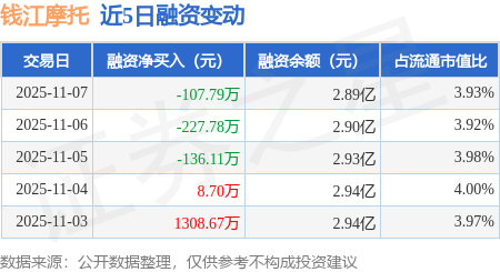 证券之星消息,11月7日,钱江摩托(000913)融资买入456.54万元,融资偿还564.33万元,融资净卖出107.79万元,融资余额2.89亿元。