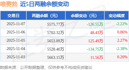 证券之星消息,11月7日,唯赛勃(688718)融资买入291.68万元,融资偿还418.23万元,融资净卖出126.55万元,融资余额5575.77万元。