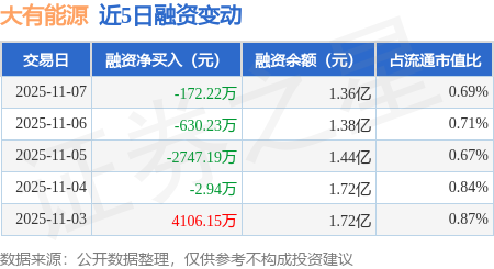 证券之星消息,11月7日,大有能源(600403)融资买入6688.52万元,融资偿还6860.74万元,融资净卖出172.22万元,融资余额1.36亿元,近20个交易日中有11个交易日出现融资净买入。