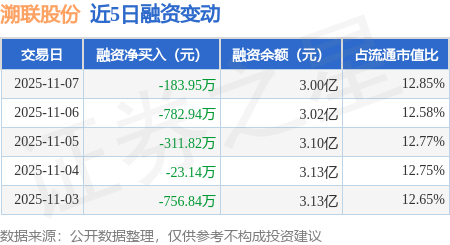 证券之星消息,11月7日,溯联股份(301397)融资买入1397.26万元,融资偿还1581.21万元,融资净卖出183.95万元,融资余额3.0亿元。