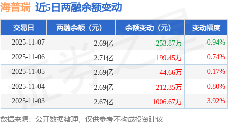 证券之星消息,11月7日,海普瑞(002399)融资买入337.05万元,融资偿还601.03万元,融资净卖出263.99万元,融资余额2.68亿元。